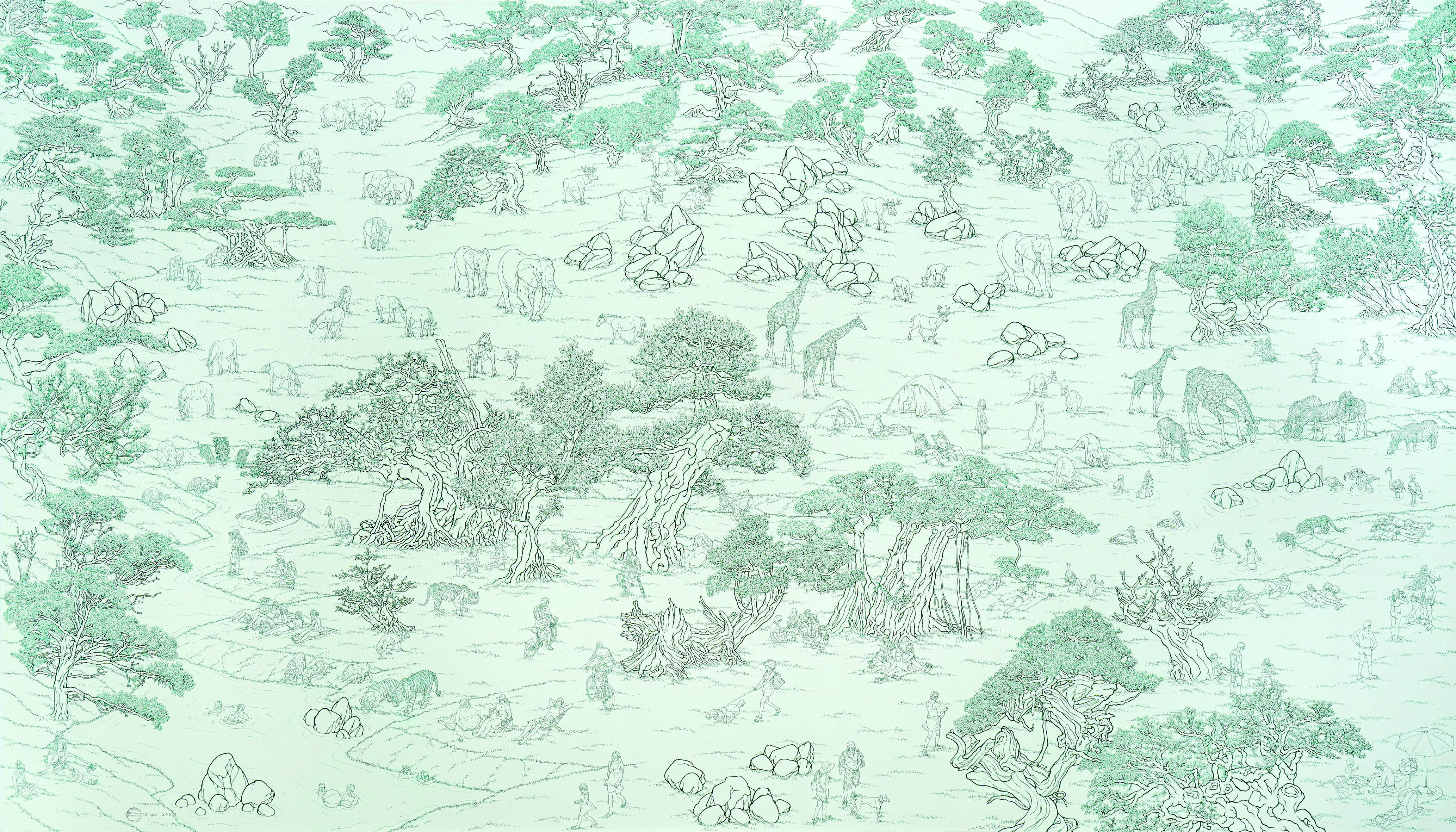 Whether he realizes it or not, what M. Irfan is doing is an effort to resist. A way of depicting landscape that does not depend on colonial conceptions is also a subversive effort. In the landscape painting entitled "In This Moment Everything Is Born Again", humans are presented again. Hybrid and global humans. Humans with more plural identities.